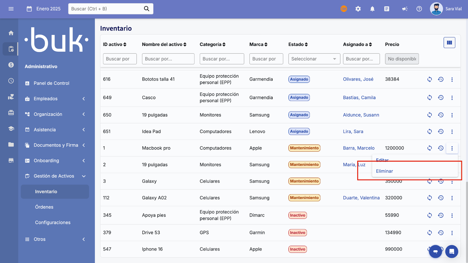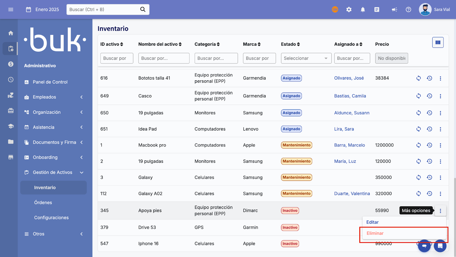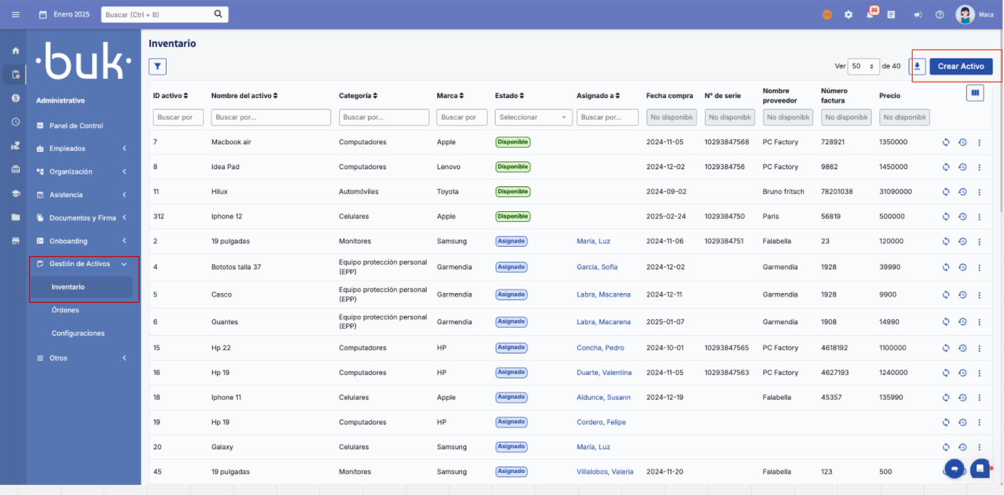 🖇️(📑 Menú lateral > 📋Administrativo > 🖥️ Gestión de Activos > ⚙️ Inventario)
