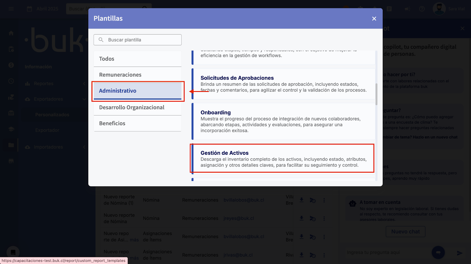 - Seleccionar pestaña Administrativo, opción “Gestión de Activos”