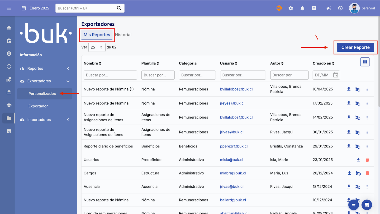 🖇️(📑 Menú lateral > 📋Información > ↘️Exportadores > ↘️Personalizados > Pestaña Mis Reportes)
