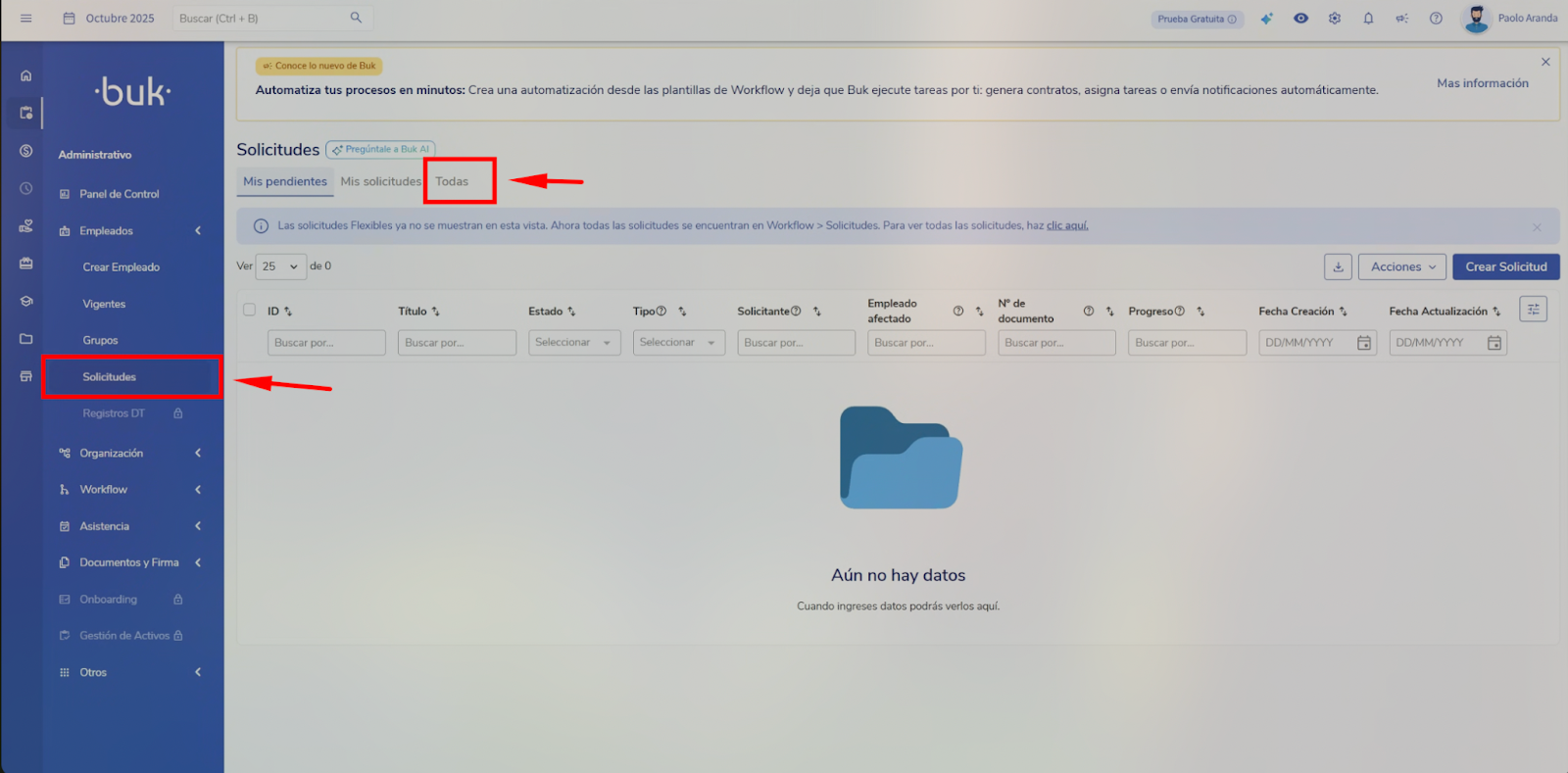 El administrador puede revisar el estado de las solicitudes DPS ingresando a su plataforma BUK: