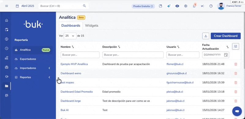 Este módulo fue diseñado para que los equipos de Personas puedan transformar datos en decisiones estratégicas mediante la creación de Dashboards y Widgets personalizados, potenciando la visibilidad y comprensión de las métricas clave de tu organización.