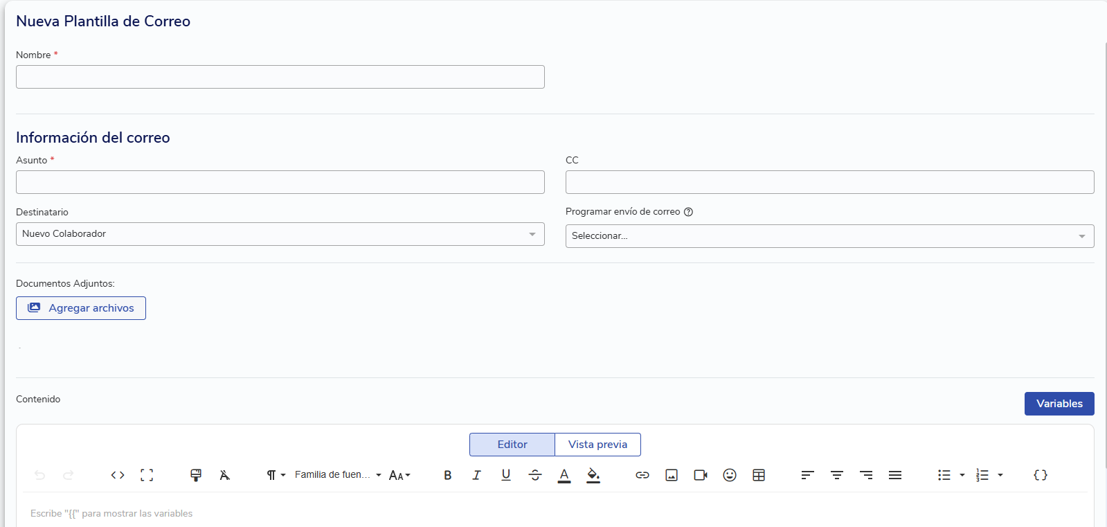 Para crear una nueva plantilla de correo: