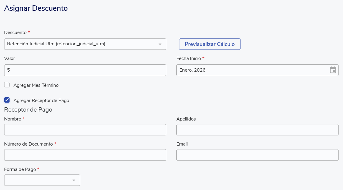 - Nombre del ítem: por ejemplo, Retención Judicial UTM