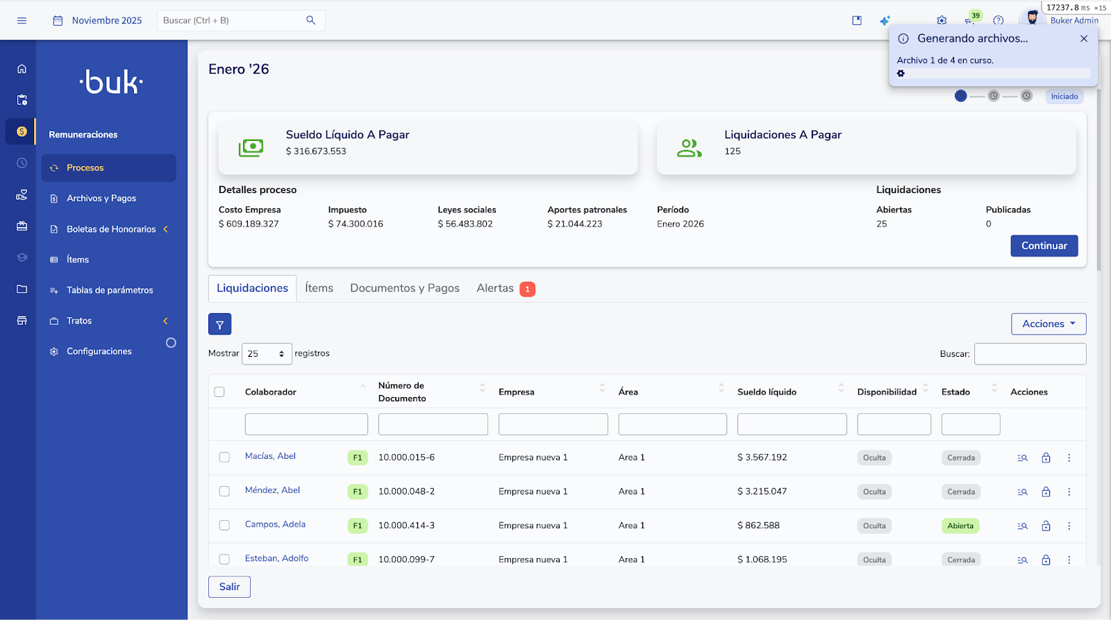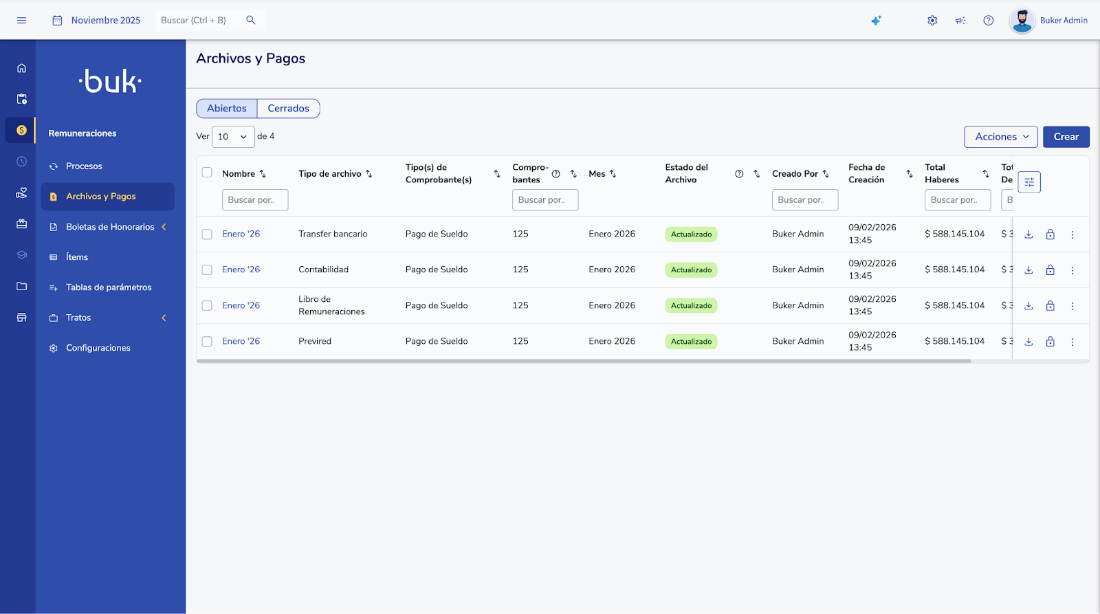 - Ingresa a Remuneraciones > Archivos y pagos y podrás descargar los archivos generados.