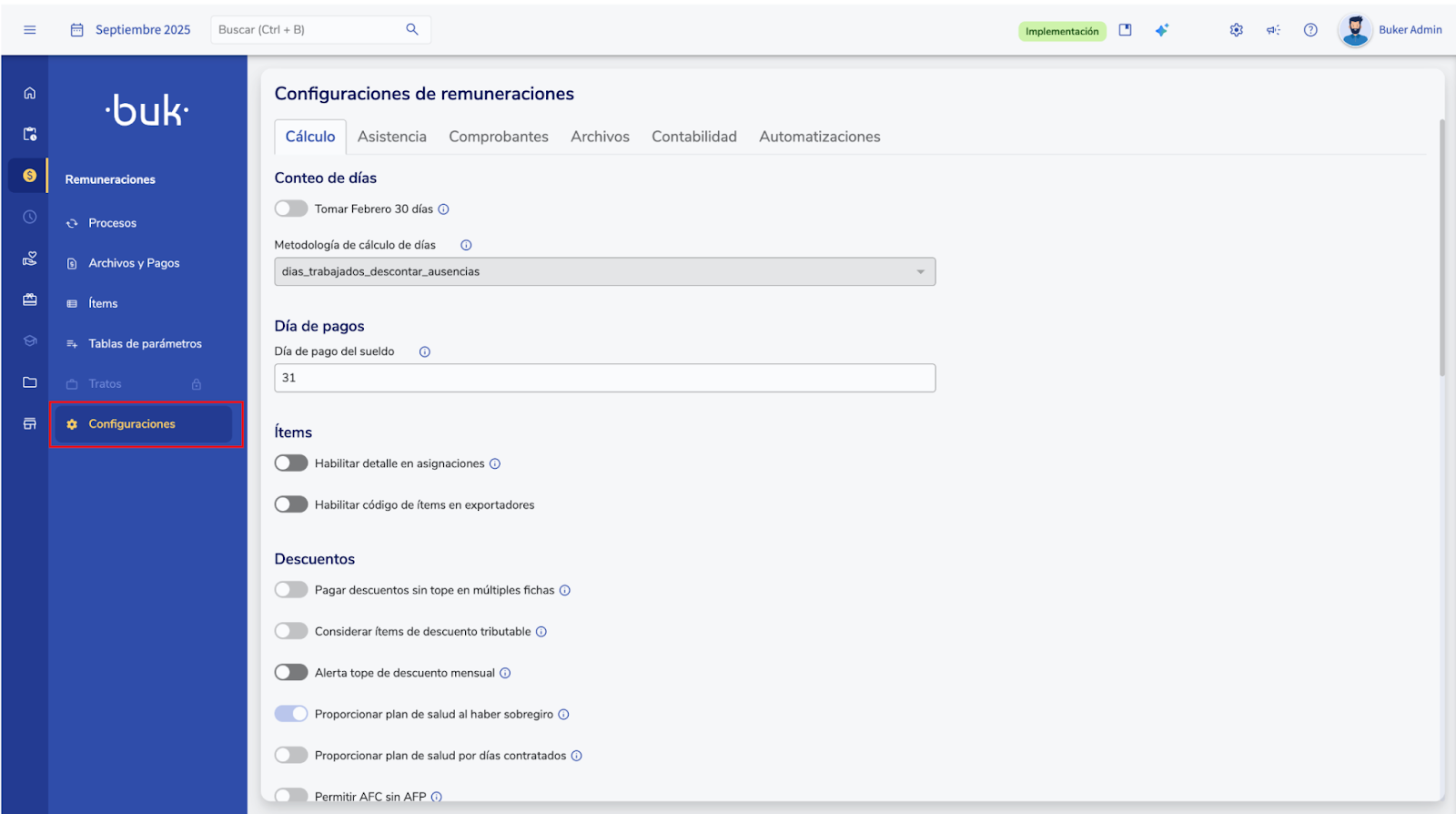 - Ingresa al módulo Remuneraciones > Configuraciones.