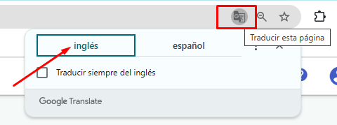Para solucionarlo, haz clic en el ícono de "Traducir esta página" en la barra de direcciones de tu navegador y selecciona el idioma original o desactiva la traducción automática para este sitio.