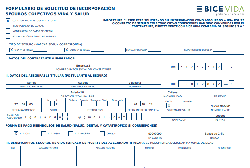 A través de este formulario, tú como asegurado solicitas, de manera formal, ser incorporado a la póliza o contrato de seguro colectivo que tu empresa mantiene con la compañía.