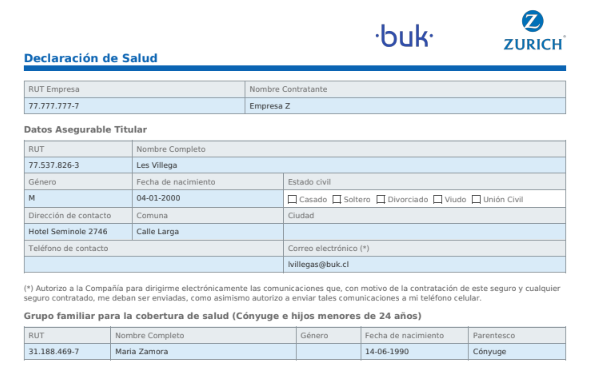 A través de Buk, automatizamos la recolección y el envío de esta información para que tus colaboradores activen su seguro en el menor tiempo posible.