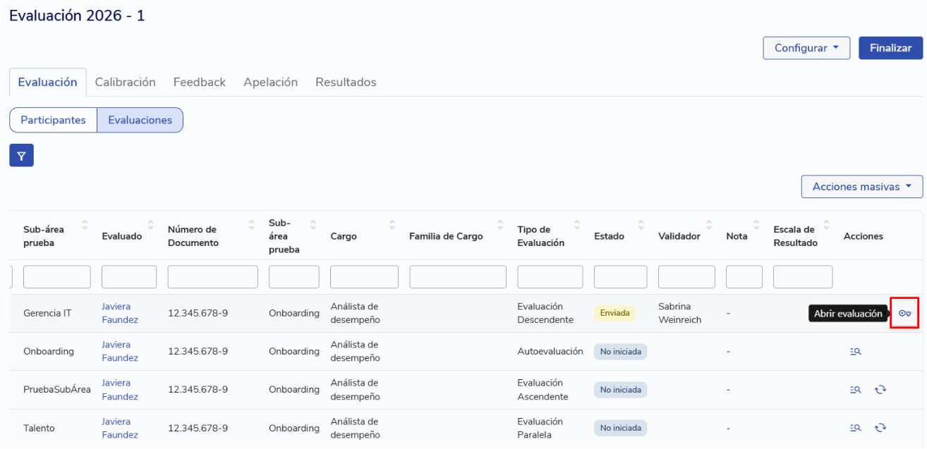 ¿Cuál es el comportamiento al reabrir el formulario de evaluación de un participante?