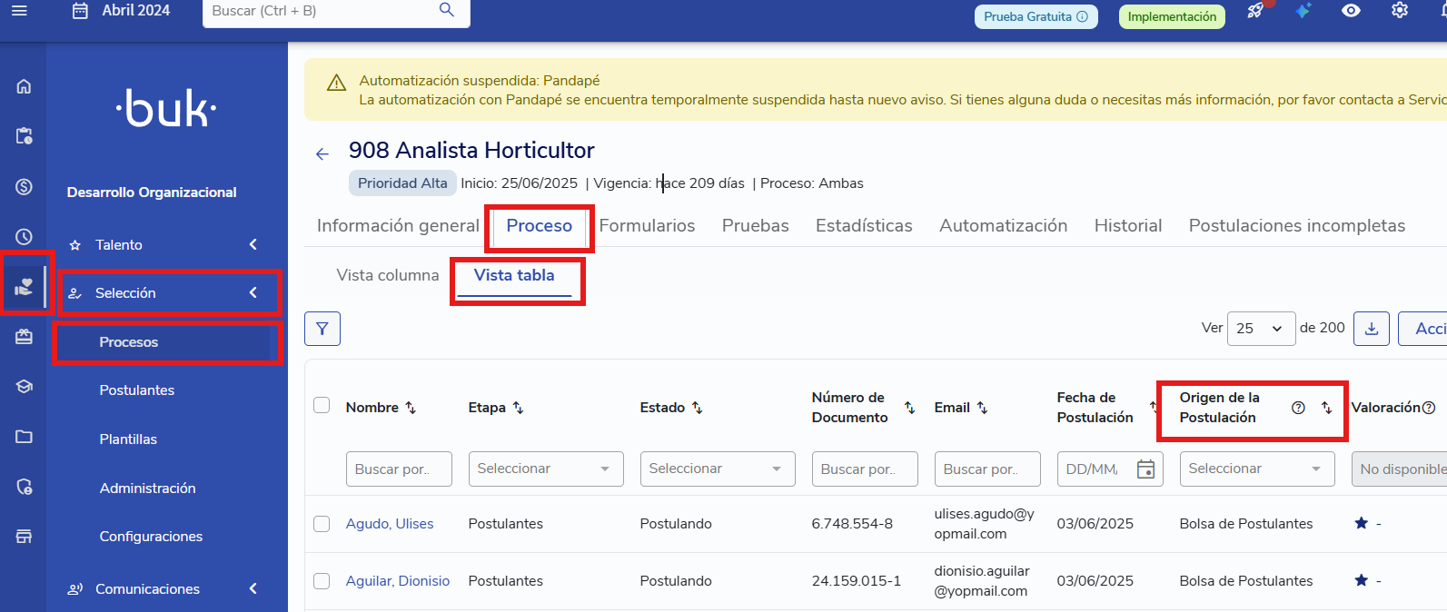 Ver y gestionar a los Postulantes