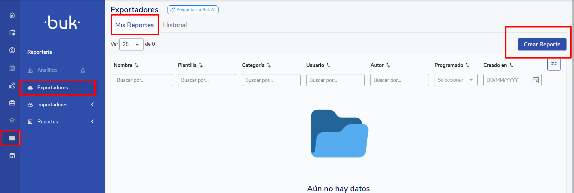 Primeiro, você deve ir até oMódulo de Relatórios >> Exportadores >> Meus Relatórios >> Criar Relatório.