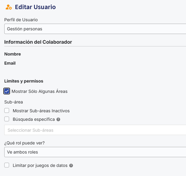 - Limitar o acesso por jogos de dados: ao ativar esta opção, o usuário só será visível para outros usuários sem limitações por jogos de dados ou que estejam atribuídos a algum dos mesmos jogos selecionados. Para mais detalhes, você pode consultar o artigoComo funcionam os Jogos de Dados?