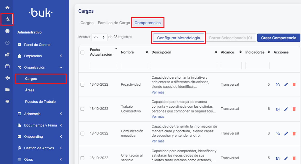 Criar e atribuir Competências: Metodologia Indicadores comportamentais