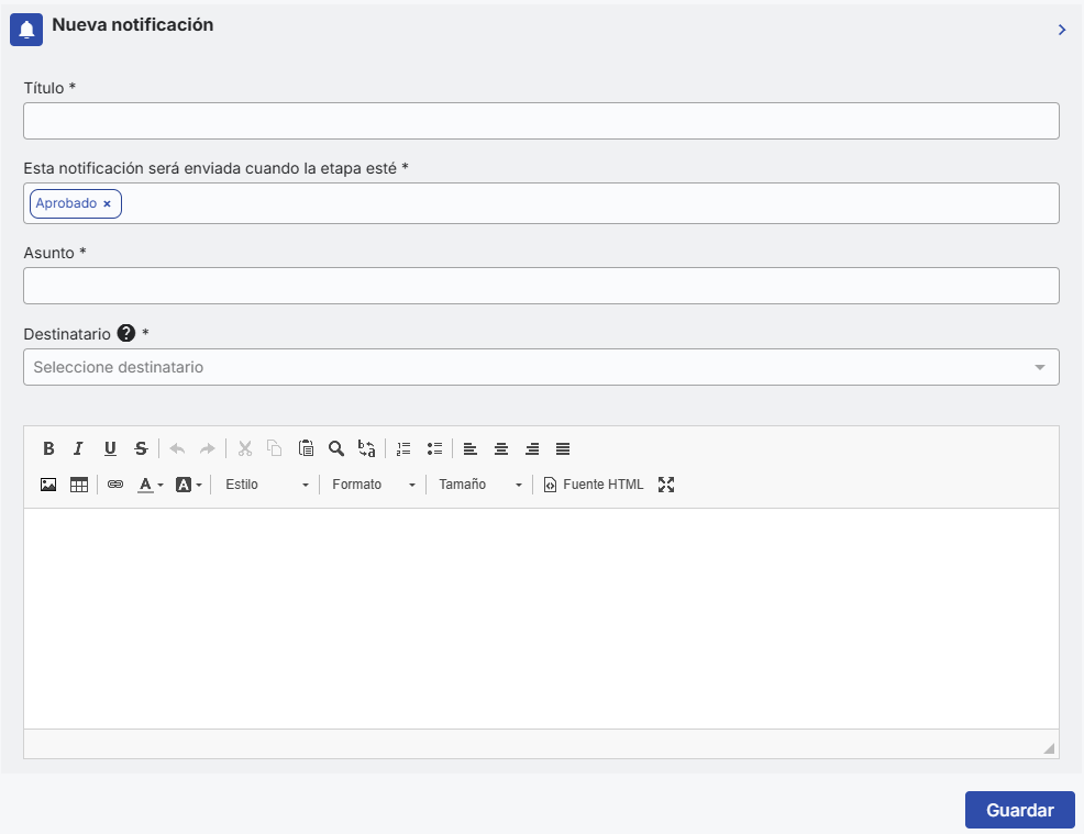 Destinatário: você pode escolher entreEndereço de e-mail,Responsável pela etapa,solicitante do processo e Aprovador da etapa anterior.