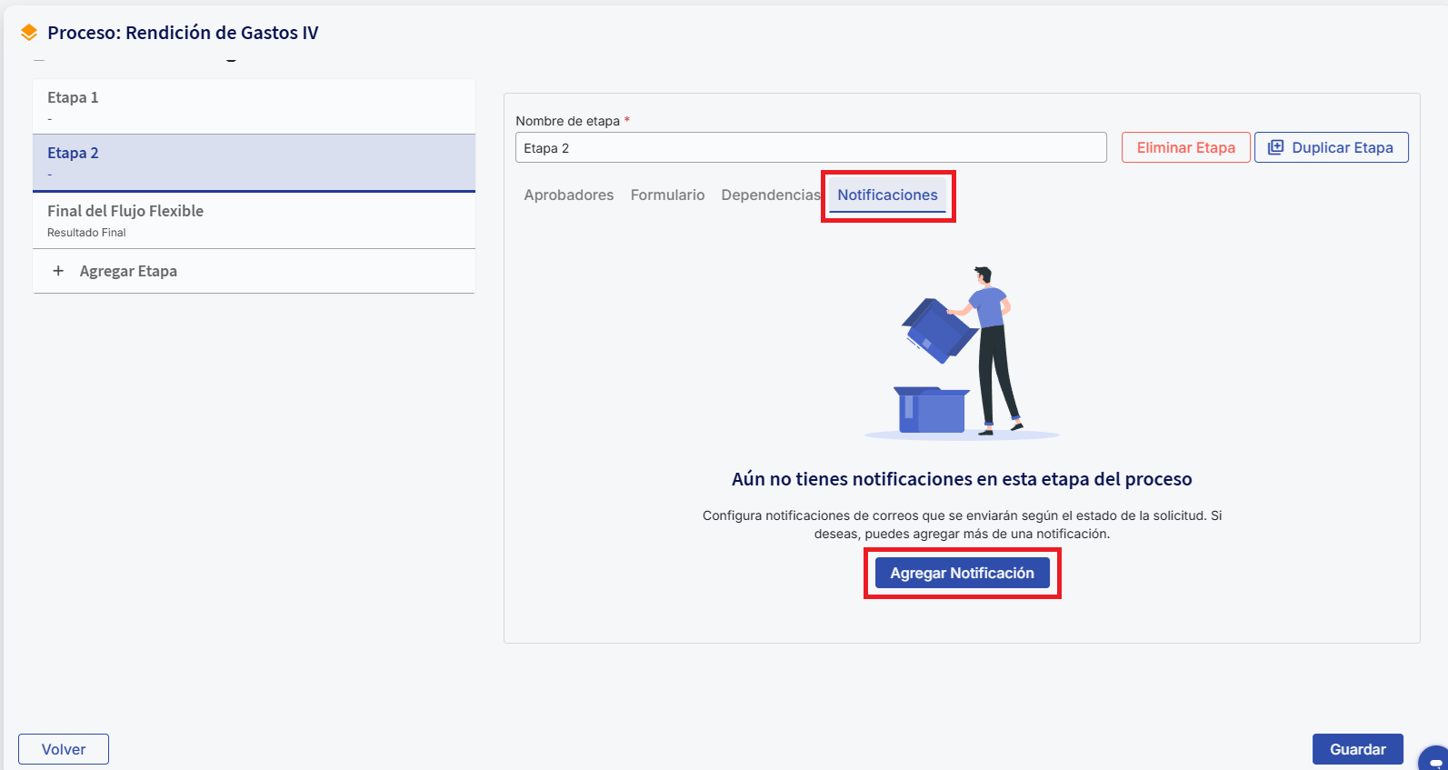 Acesse a etapa onde deseja adicionar a notificação.