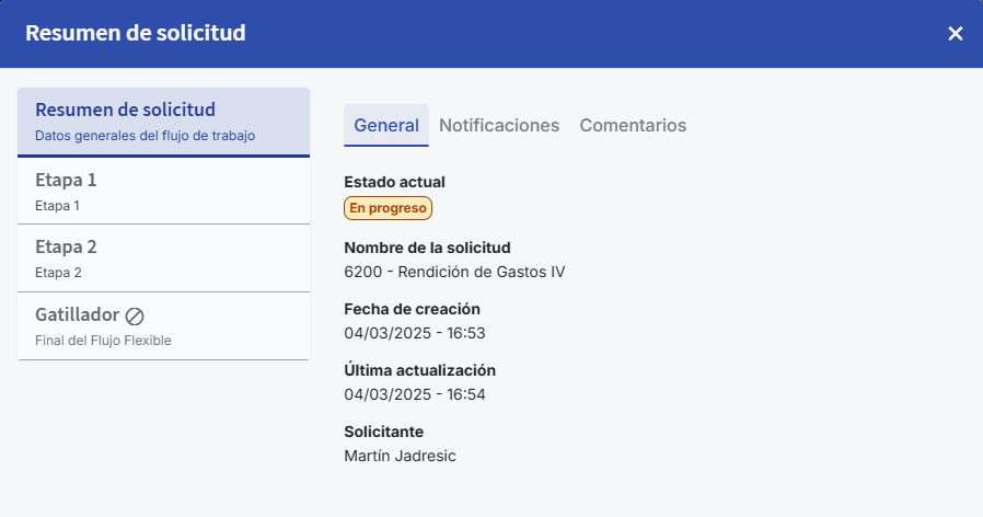 Como reviso o histórico ou acompanhamento de uma solicitação de workflow?
