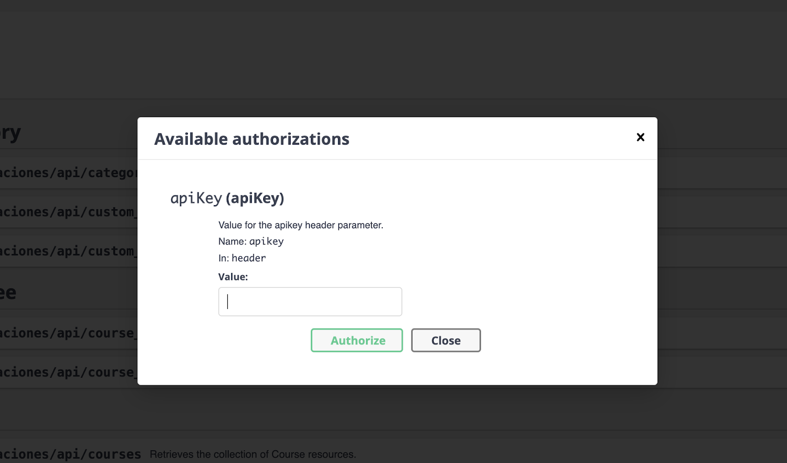 Uma vez na documentação, você pode testar a API ao vivo autenticando-se através do botão Authorize.
