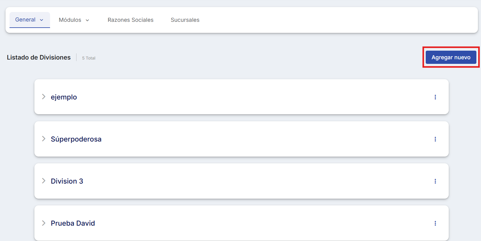 1. Adicione uma nova Divisão