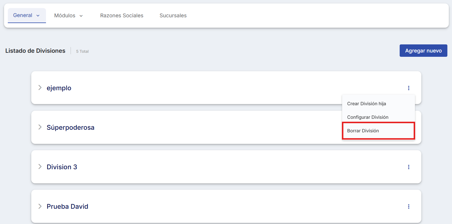 Para excluir uma divisão: