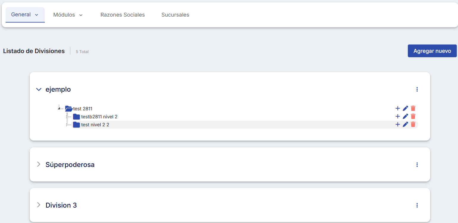 Para clientes que não possuem integração com Buk, esta seção permite estabelecer e configurar a estrutura organizacional da empresa, seja a nível de empresa ou holding.