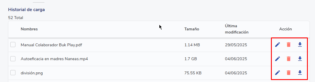 Uma vez que o arquivo foi enviado, você poderá gerenciá-lo a partir doHistórico de upload, onde são exibidas as seguintes informações: