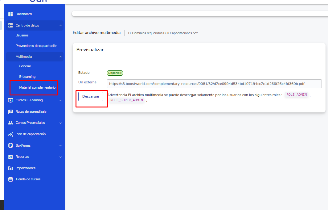 Este artigo tem como objetivo fornecer um guia sobre como utilizar a seção“Material Complementar”dentro deMultimídia, noCentro de dadosdo LMS. São detalhados os passos paracarregar arquivoscomo vídeos, imagens, PDFs, apresentações e SCORM, assim como as opções de edição, configuração de acessos e organização de documentos.