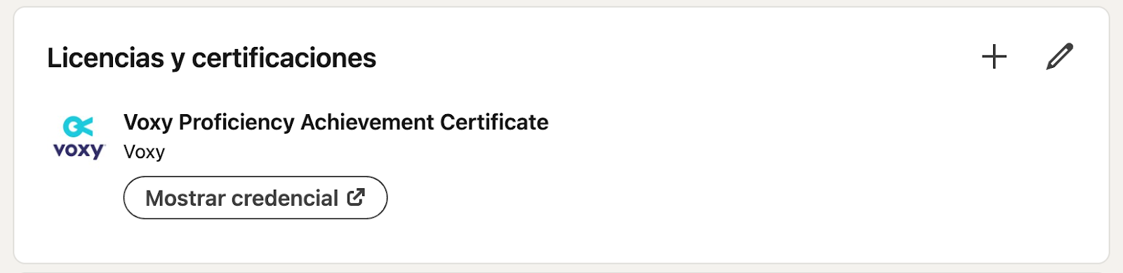 - Adicione‑o ao seu CV ou LinkedIn indicando que se trata de um “certificado de formação em inglês – Voxy” e, se constar, mostre o nível CEFR ou equivalente que você alcançou.