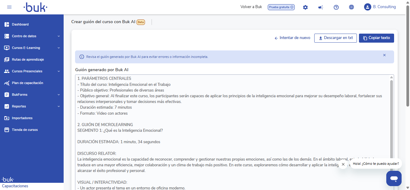 Cómo crear un guión instruccional con Buk AI