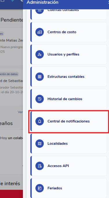 - Selecione a opçãoCentral de Notificaçõesno menu: