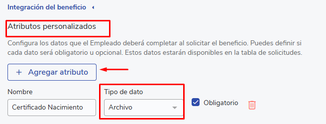 1.- Configuração do benefício com atributos personalizados tipo arquivo