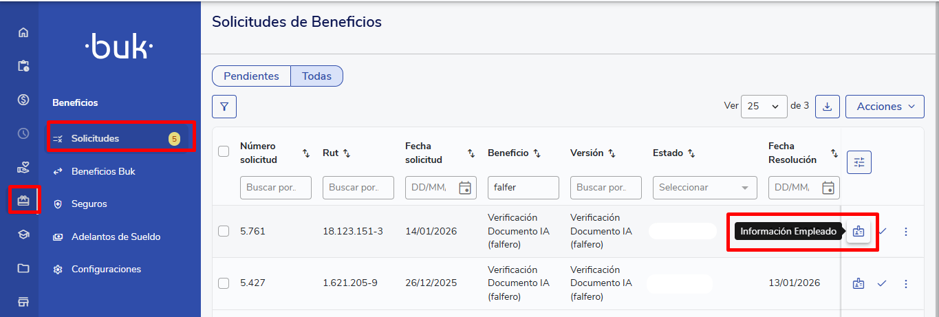 Uma vez realizada a solicitação dos seus colaboradores, antes de aprovar (Como aprovar solicitações de benefícios), você poderá revisar se essa solicitação cumpre os requisitos emSolicitações>>Informações do colaborador